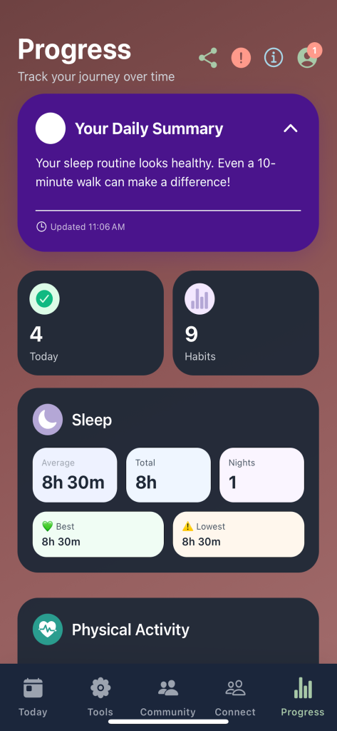 • Practitioner sharing: Optionally connect your progress with a coach, counselor, or therapist for guided support.